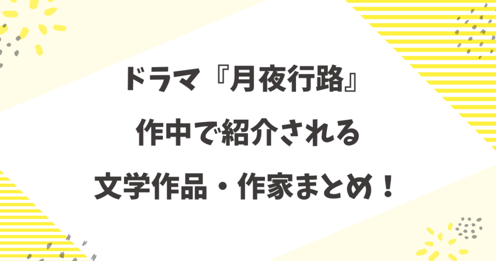 2026年4月スタートのドラマ『月夜行路-答えは名作の中に』では、数多くの文学作品や作家が登場します。 そこでこの記事では、ドラマ内に登場した作品・作家名をまとめ...